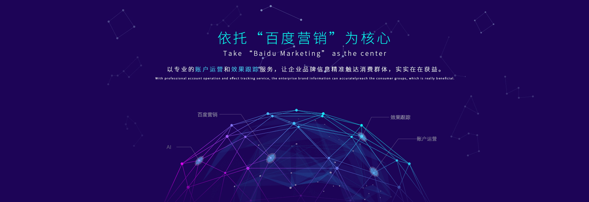 以百度營銷業(yè)務為核心,為本地商家提供網(wǎng)絡營銷及網(wǎng)站建設服務